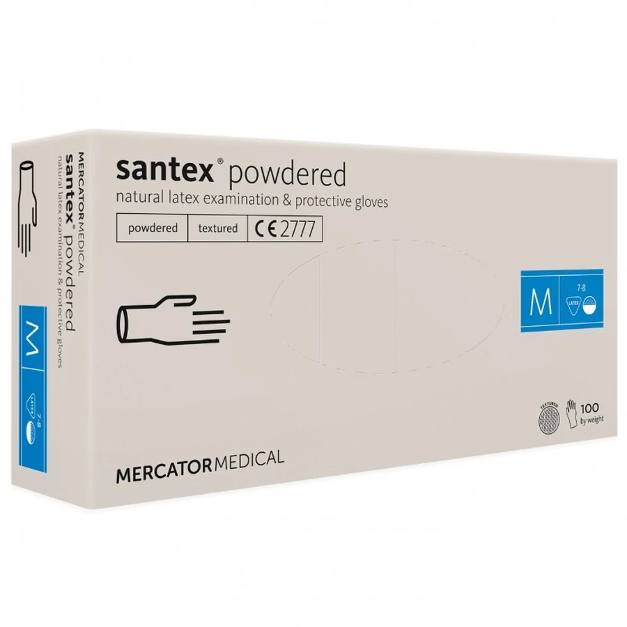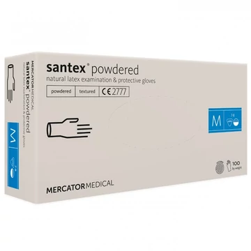 MERCATOR Santex púderes latex vizsgálókesztyű természetes gumilatexből készült, belső talkum bevonattal a könnyebb fel- és levétel érdekében.