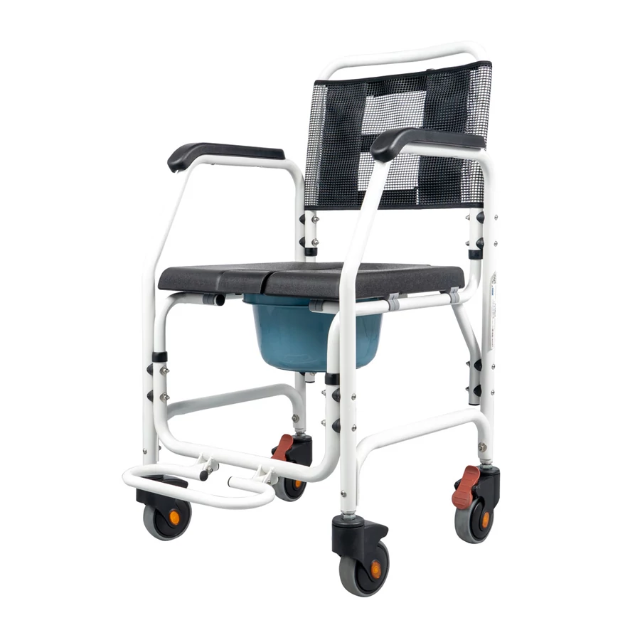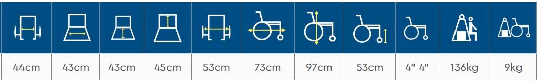 Fix kartámaszok, levehető vagy dönthető lábtartók biztosítják a kényelmet és testreszabhatóságot. A 4″ tömör kerekek stabilitást nyújtanak és a hátsó kerekeken elhelyezett fékek megállítják a széket. Használható önállóan tolós kialakításban vagy gondozó által vezérelve. 136 kg maximális teherbírásával megbízható társ a mobilitásban.