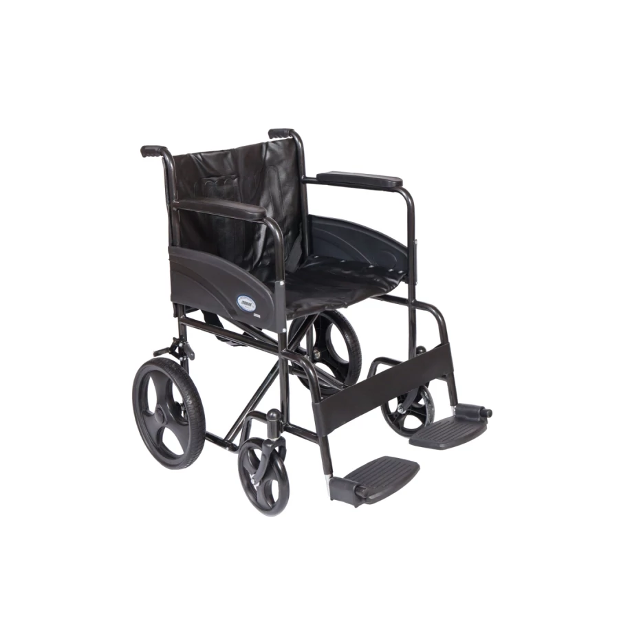 Mobiak Basic IV egy beltéri használatra tervezett, acélvázas transzport kerekesszék, amelyet kísérő személy által történő mozgatásra optimalizáltak. Kompakt mérete és egyszerű kezelhetősége ideálissá teszi szűk helyeken, például otthonokban vagy egészségügyi intézményekben való használatra.