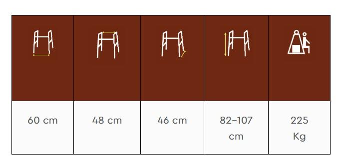 Nagy teherbírású járókeret erős, mégis könnyen kezelhető alumíniumból készült, akár 225 kg testsúlyt is biztonságosan megtart. Kifejezetten olyan felhasználók számára készült, akik fokozott stabilitást és tartósságot igényelnek. Összecsukható kialakítása megkönnyíti a tárolást és a szállítást. Magassága egyszerűen állítható, a csúszásgátló gumitalpak pedig biztosítják a stabil használatot különböző felületeken. Ideális mindennapi járástámogatáshoz, nagyobb testsúly esetén is.