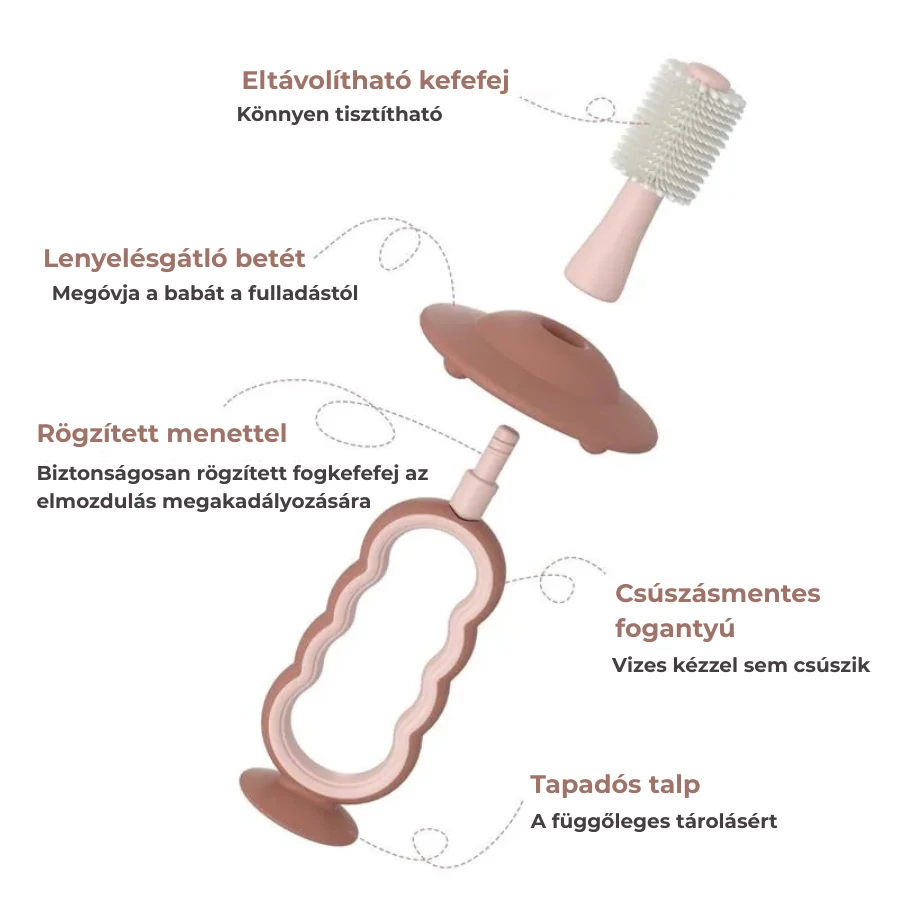 Kifejezetten a babák érzékeny ínyének és első fogainak gyengéd tisztítására lett tervezve. Puha, BPA-mentes szilikon sörtékkel rendelkezik, melyek kíméletesen masszírozzák az ínyt és eltávolítják a lepedéket anélkül, hogy irritálnák a szájat.