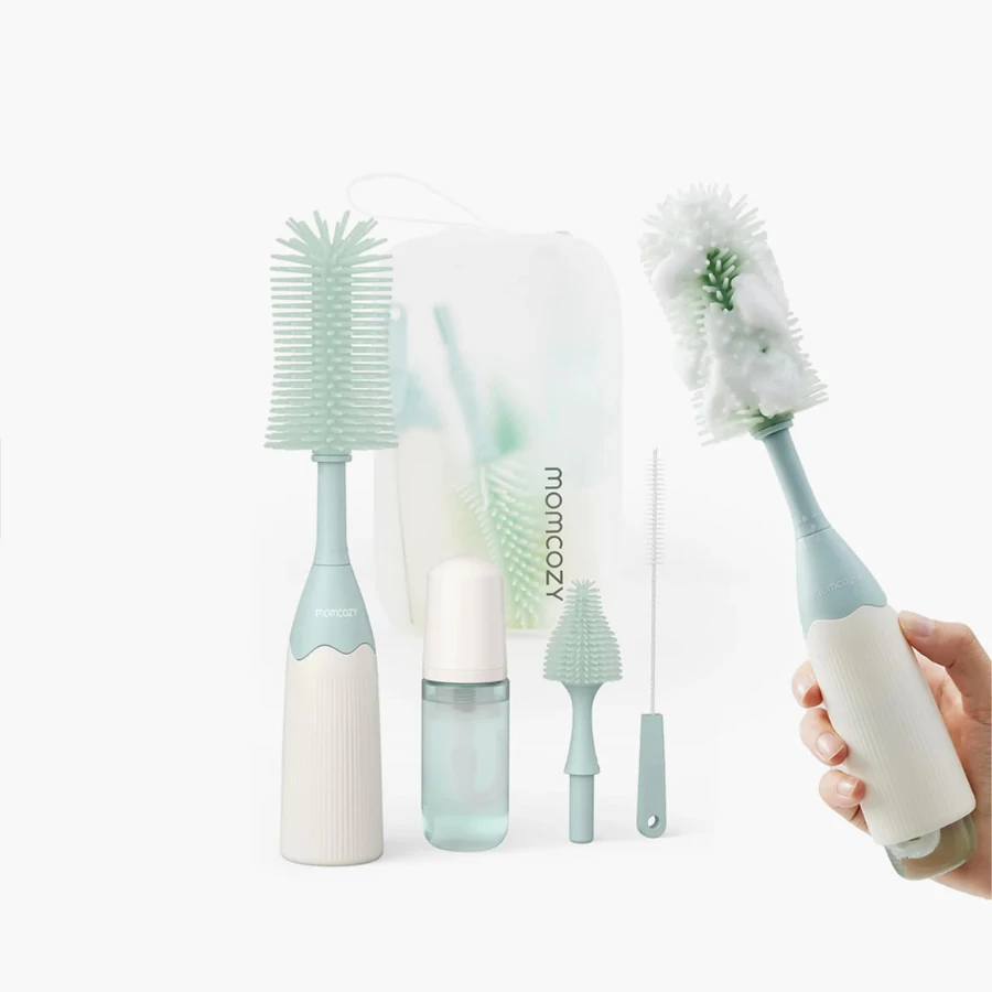 A Push and Press cumisüvegmosó kefe szett innovatív kialakításának köszönhetően könnyed és hatékony tisztítást biztosít. A szettben található nyomásos adagolórendszer lehetővé teszi a tisztítószer egykezes adagolását, miközben a puha, sűrű sörték és szivacsfejek alaposan tisztítják a cumisüvegek és tartozékok minden részét. Ideális újszülöttek és kisgyermekek étkezési eszközeinek higiénikus tisztításához. BPA-mentes anyagból készült, könnyen tisztítható, és tartós.